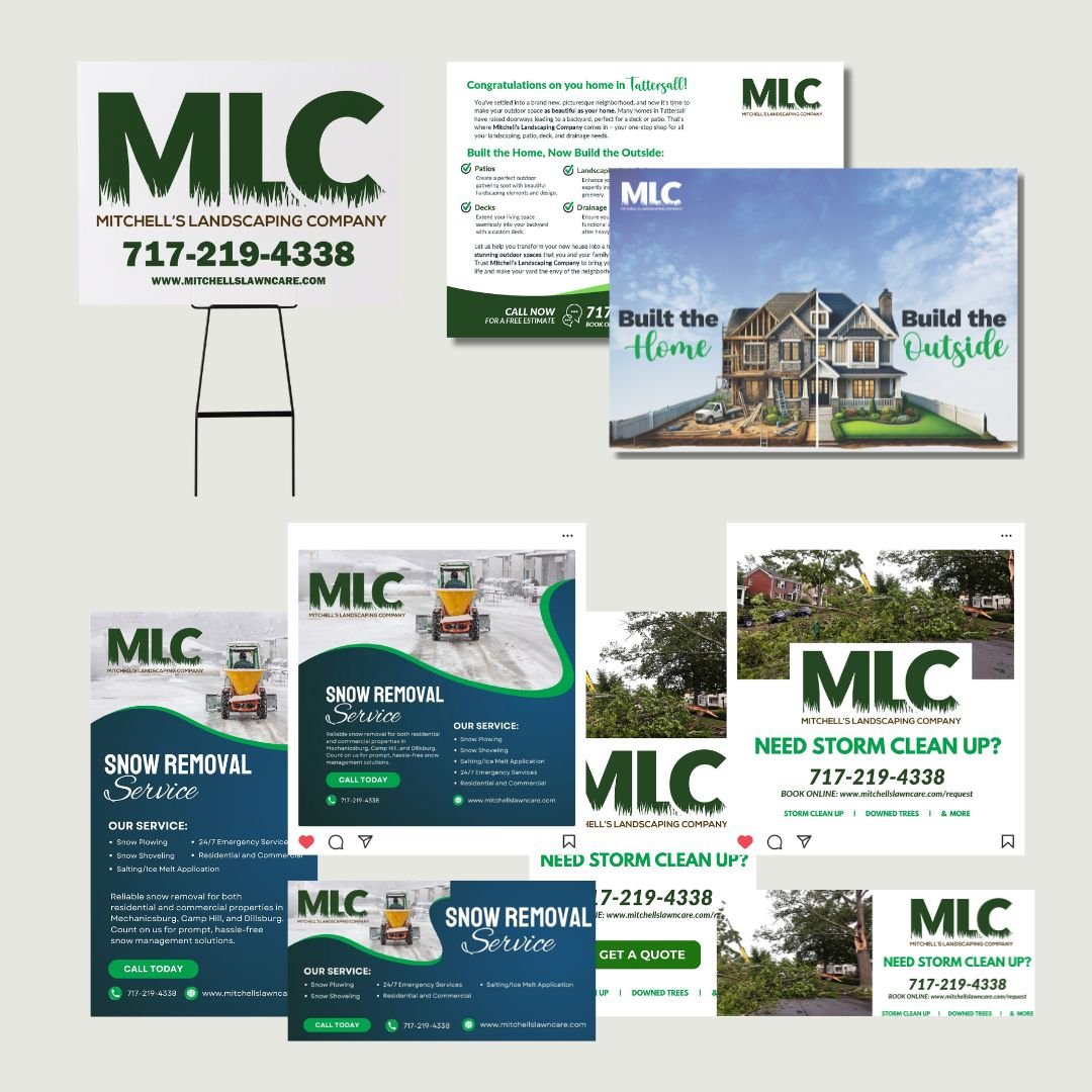 For Mitchell's Landscaping Company, I developed a range of brand materials designed to enhance visibility and drive client engagement. This project included yard signs, direct mail postcaards, and online ads, each crafted to strengthen brand recognition and effectively communicate Mitchell’s landscaping services. The yard signs were designed to be highly visible and immediately recognizable, while the direct mail and online ads used targeted messaging and appealing visuals to attract new clients and build community awareness.